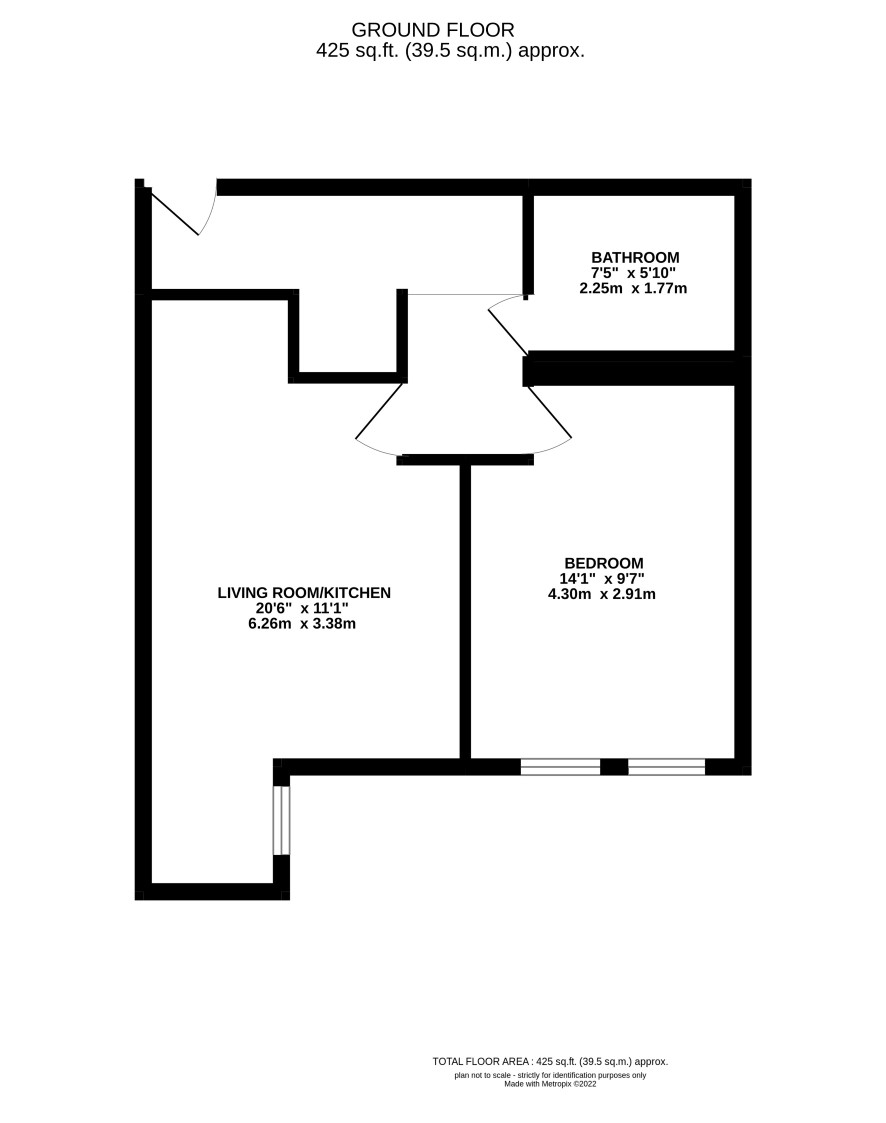 Living room/kitchen, bathroom and bedroom