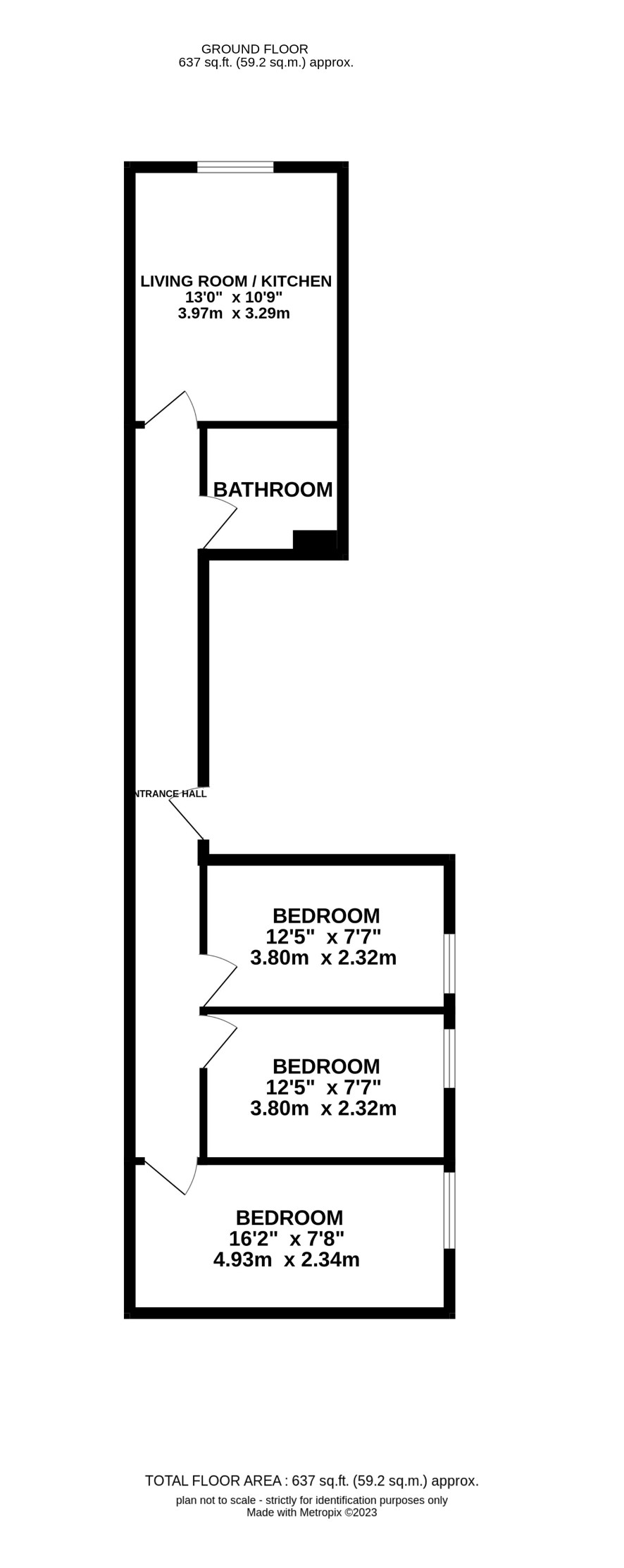 Hall, living kitchen, three bedrooms and bathroom.