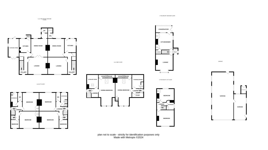 Ground Floor: Hallway, lounge, dining room, kitchen, wc. First Floor: Three bedrooms, bathroom, wc. Second Floor: Dorma bedroom, study, stoage room.
