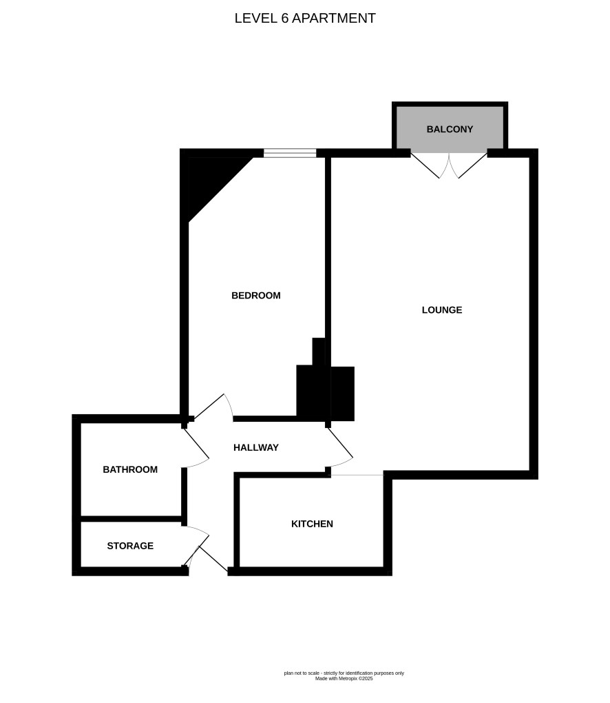 Lounge/kitchen area with balcony, bedroom and bathroom.