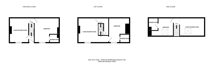 Living room/kitchen, bedroom and shower room.