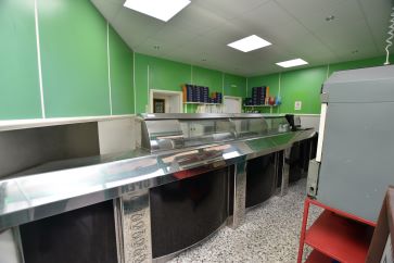 Fish and chip shop, preparation area, kitchen and WC