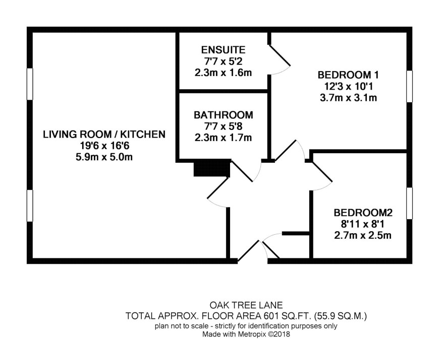 Hall, living/dining/kitchen, two bedrooms, ensuite shower room and bathroom