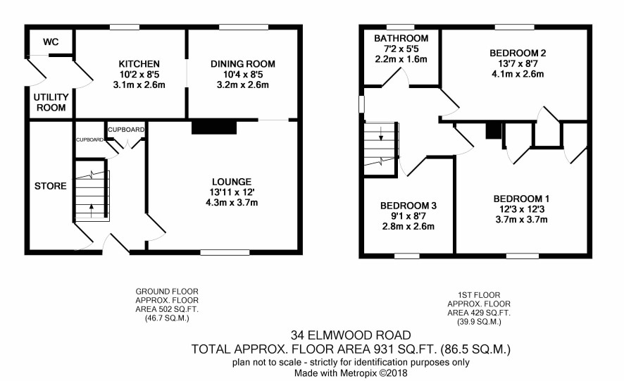 Hall, lounge, dining room, kitchen, WC, utility room and store.