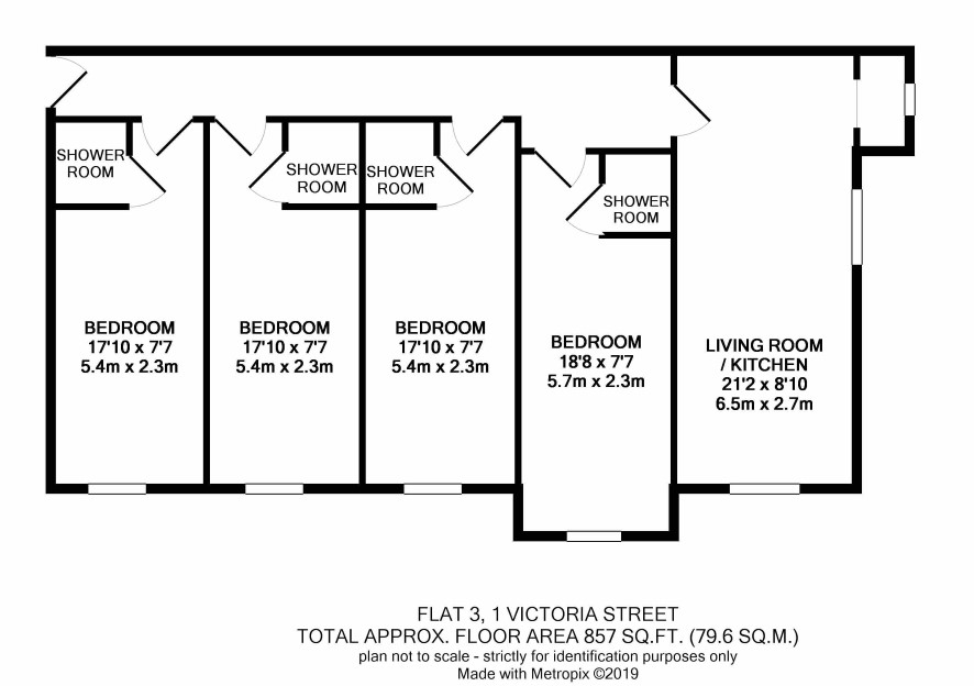 Hall, living kitchen, four bedrooms and four ensuite shower rooms.