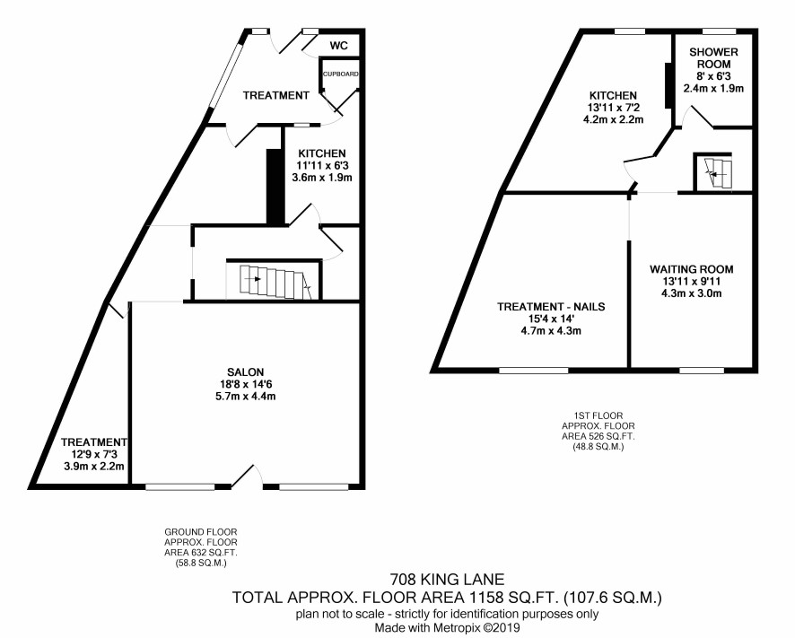 Salon, two treatment rooms, wc and kichenette.