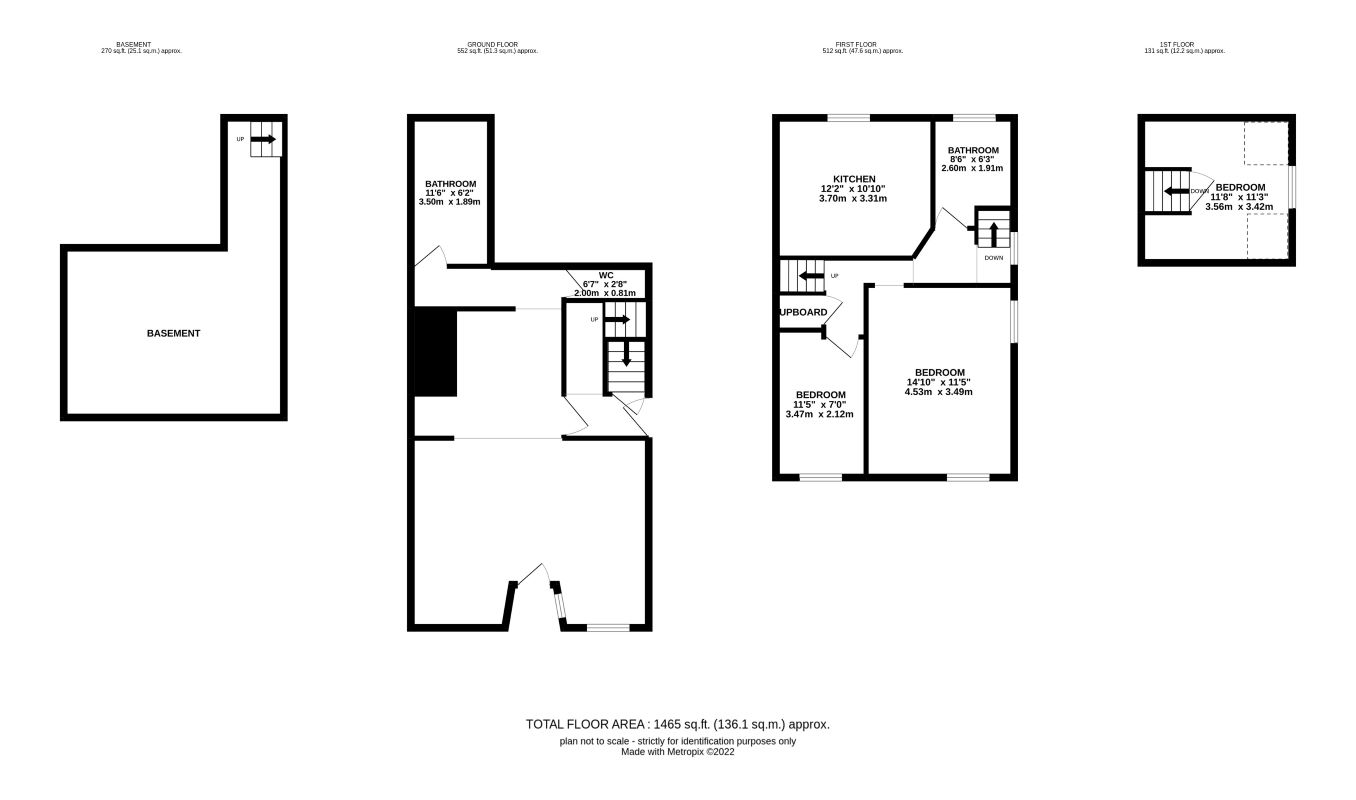 Lower ground floor - Basement Ground floor - Two rooms, bathroom and WC First floor - Kitchen, two bedrooms, bathroom and cupboard Second floor - Bedroom Externally garage - not inspected
